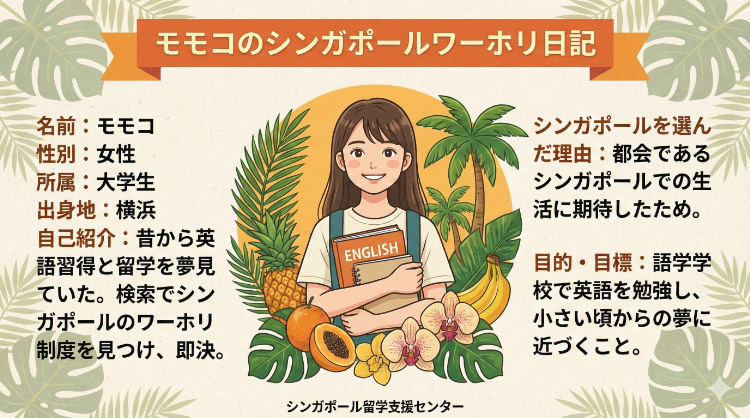 4月から半年間シンガポールでワーホリをすることになりました、momokoです。