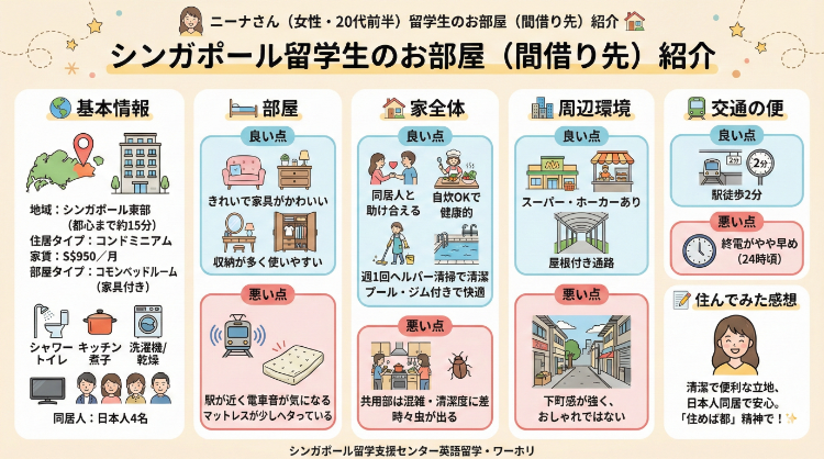 シンガポール留学支援センターがサポートした留学生の中には、最初の2か月学生寮でその後間借りに切り替える人も多いみたいです!