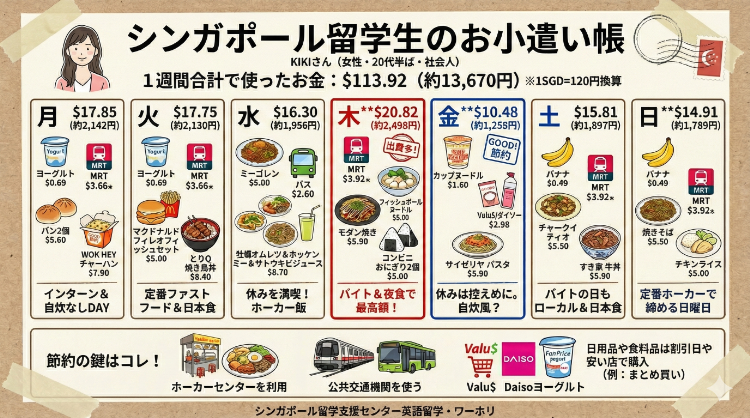 シンガポール 留学生のお小遣い帳 KIKIさん(女性・20代半ば)