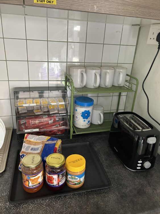 ・朝食(8時〜11時)は食パンと数種類のジャム、コーヒー・紅茶はいつでも飲み放題