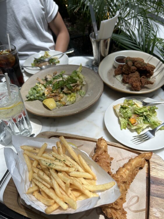 今回いただいたメニューはこちらです: • Sesame Cream Caesar 25$(約2,975円) • Beer Battered Fish & Chips 33$(約3,927円) • Buttermilk Fried Chicken 27$(約3,213円)