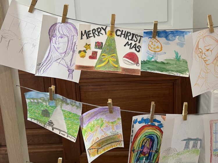 上段中央のクリスマスの絵です🎄🎨✨