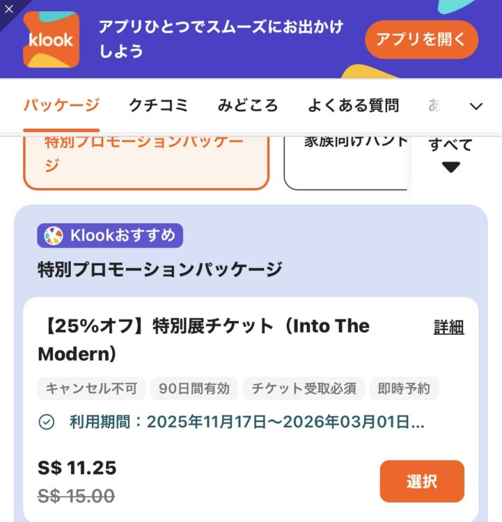 わたしは特別展示のみのチケットでしたが、定価が$25(約3000円)のところ$18ほど(約2100円)だったので実質900円もお得にチケットを購入することができました。しかし、帰宅後Klookをみると$11(約¥1,300)ほどの価格でチケットが販売されていたのでKlookのサイトかアプリからのチケット購入がいいと思います。