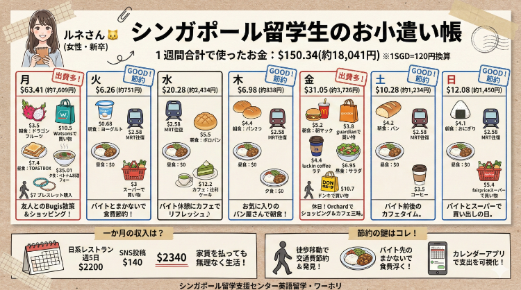 シンガポール 留学生のお小遣い帳 ルネさん(女性・新卒)