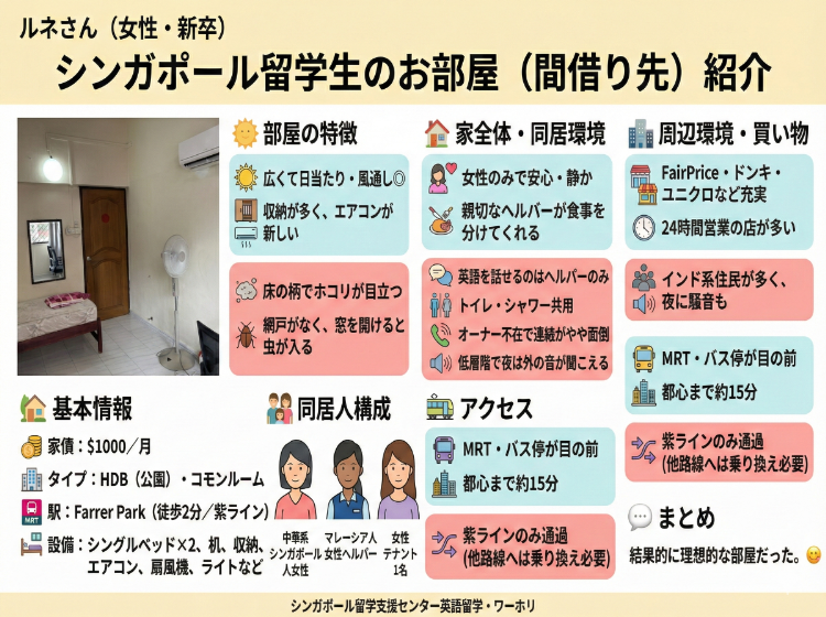シンガポール留学生のお部屋(間借り先)紹介 ルネさん(女性・新卒)