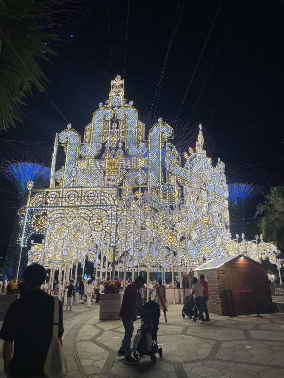 2025年12月いっぱいまで開催されているガーデンズバイザベイのクリスマスイベントに行って来ました!クリスマスマーケットに加え、イルミネーションやフリーカクテルドリンク配布などもあり、メリーゴーランドなどの乗り物もありました。