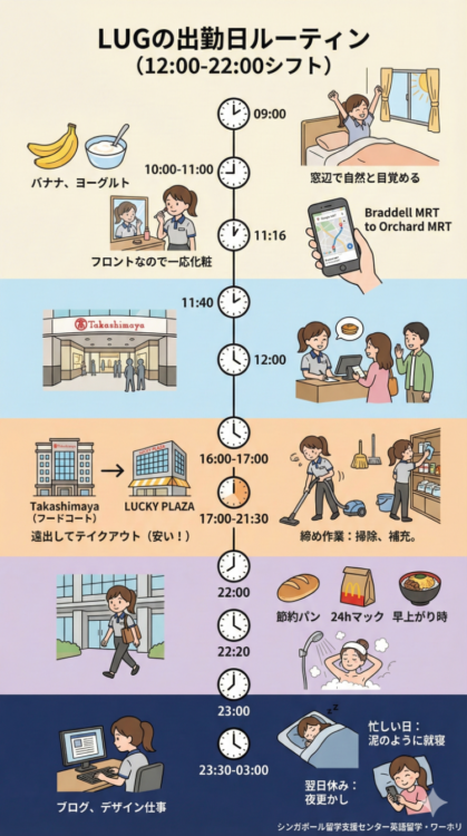 LUGの出勤日の1日のルーティン(12:00-22:00シフトの日):