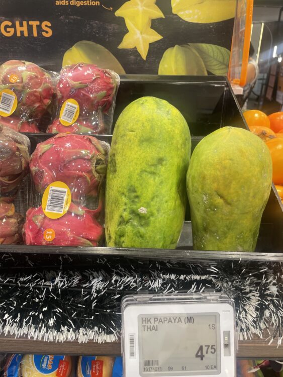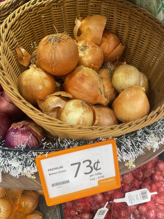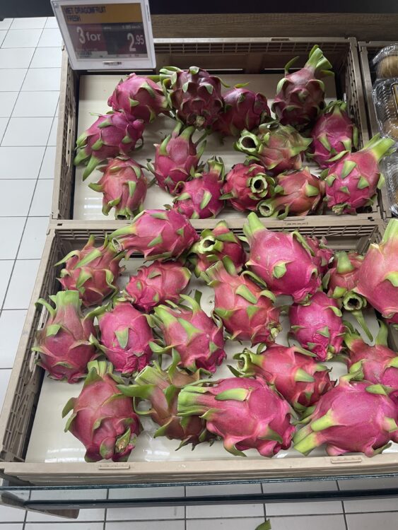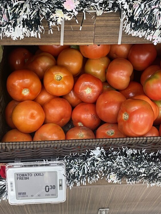 このような感じで場所によって店の大きさは異なってきますが、売られているものは大体同じなのでよく足を止めては果物や野菜の大きさ、値段に驚いています。日本と売られ方も違うので、違いを見つけるのも楽しいです。