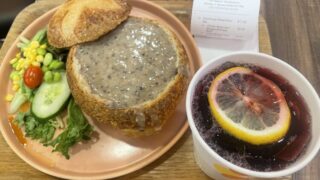 そうなんです、パンです。スープの器がパンなんです。器ごと食べれるタイプです。野菜がついてくるのもありがた過ぎます。