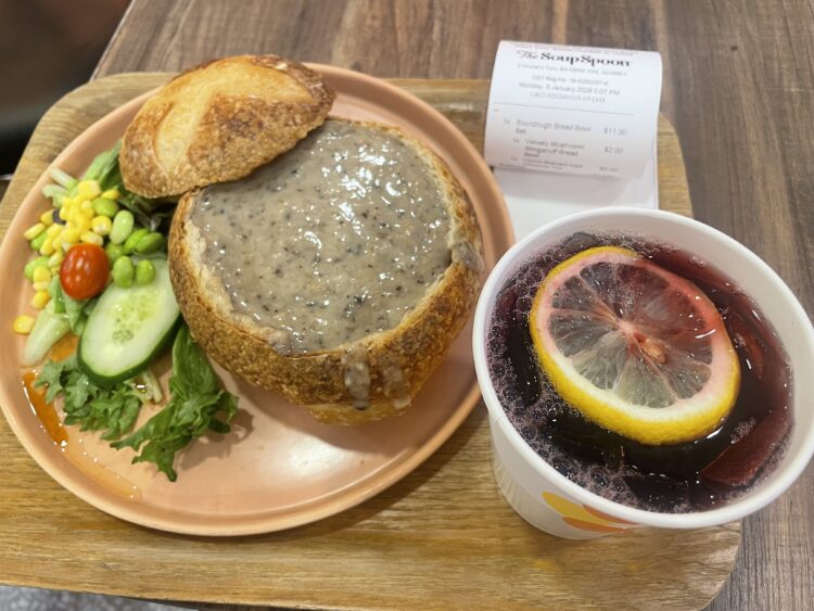 これはちょうどION Orchard(イオンオーチャード)というモールの中にある店舗で食事した時の写真でして、マッシュルームスープを注文しました。ティーは名前が気になったので、ハイビスカスティーです。以前はもっと店舗があったイメージなのですが、少なくなってしまったんですかね。