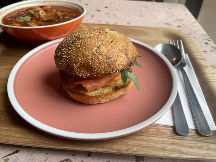 他にもこのようなメニューもございます!私はちょうどその日はスモークサーモンが食べたかったので、2回目はこちらにしました。スープはミネストローネです!お店の場所はNovena mrt近くにあるVelocityです。バスケットボールコートの近くで、店内もオシャレでした。