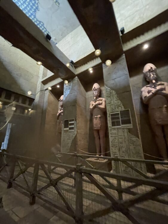 実は小学5年生の頃に一度は挑戦したことあるのですが、あまりにも内装の雰囲気が怖くて離脱したことがあるので、ある意味私にとってもリベンジの「リベンジオブザマミー」でした。克服しました。でもやっぱり最初乗る前は怖かったです。例えるなら、日本のタワテラと同じような怖い雰囲気と演出でビビり散らかしてから、いざ乗った後楽しかった〜!もっかい!ってなるやつと同じ感覚でした。その後はHuman vs Cylonに乗りました。そこで出会ったもう一人のシングルライダーの方と仲良くなり、二人でその日は他を巡りました。