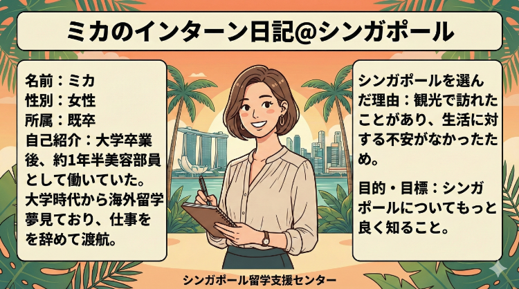 シンガポールでインターンシップ中のMikaです!